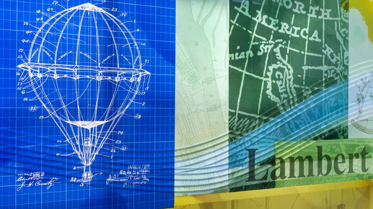 Images of Lambert are overlaid with historic maps of St. Louis. These scenes could be viewed by the naked eye of Lambert as he flew above the ground, the images then move onto a globe and world map. Finally into the future as represented by the planets and stars. The stars are represented by Lamberts astrological sign Sagittarius – (One of the planets is actually a Golf Ball as a reference to Lambert being an Olympic Golfer)